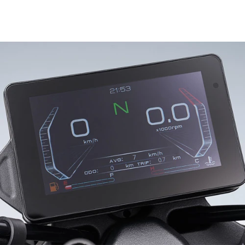 – Udobje in funkcionalnost: sedež z dvojno višino, nastavljiv krmilo, 16-litrski rezervoar za gorivo in centralno zaklepanje s pametnim ključem.