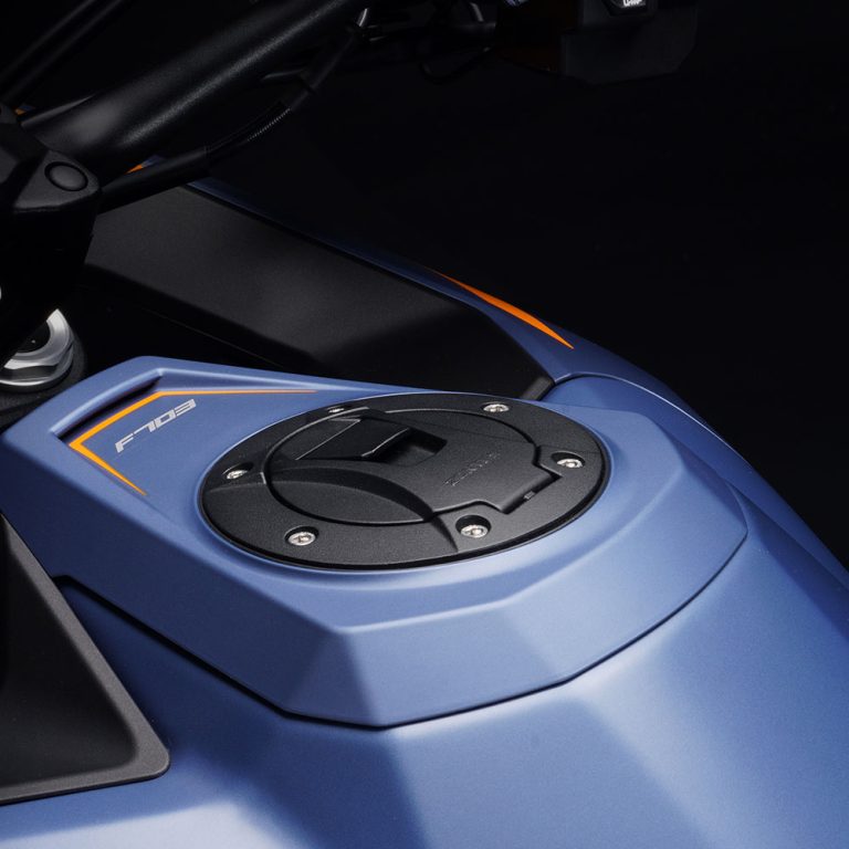 703F ima velik rezervoar za gorivo s prostornino 22 l. Velik rezervoar zagotavlja, da boste dlje ostali na cesti in manj razmišljali o tem, kdaj bo naslednji postanek na bencinski črpalki.