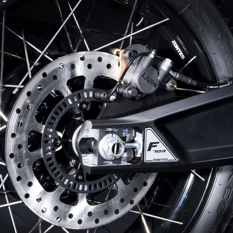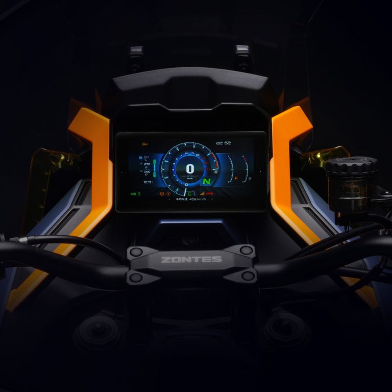 703F izstopa tudi po količini opreme, ki jo je Zontes vgradil vanj, saj vključuje barvni TFT zaslon velikosti 6,75″, keyless sistem za zagon brez ključa, 2 USB priključka za hitro polnjenje telefona, TCS, ABS, Quickshifter, električno nastavljiv vizir, ogrevane ročke, senzor tlaka in temperature pnevmatik ter še veliko več.