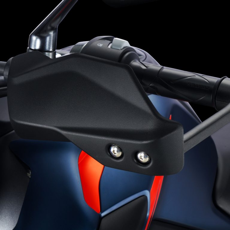 Opremljen je z disk zavorami in Boschovim dvokanalnim ABS sistemom – prav ta kombinacija vam bo zagotovila varnost in nadzor pri vsakem zaviranju. Ščitniki za roke in zaščitni okvirji so v standardni opremi, saj nudijo zaščito tako vam kot vašemu motociklu.