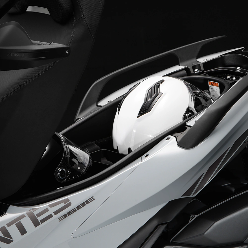 368 E ima velik prostor pod sedežem, v katerega se prilegata dve veliki čeladi, ter dva predala pred voznikom, kamor lahko odložite različne stvari.