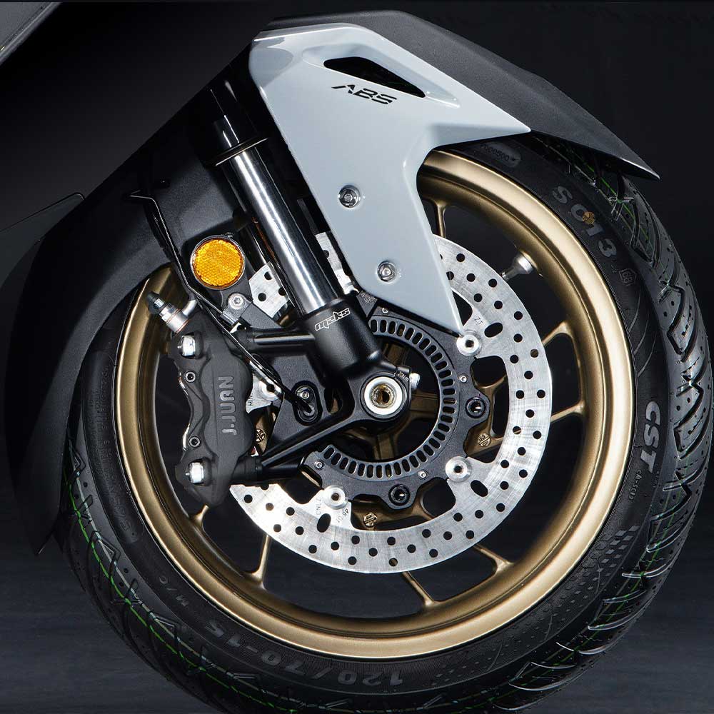 Model 368K je opremljen z novim dvo-kanalnim ABS zavorni sistemom Bosch, ki v kombinaciji z Juanovimi kolutnimi zavorami zagotavlja zaupanje in varnost pri vsakem zaviranju.